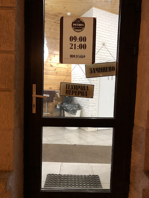 Poed on üldiselt kaua lahti. On ka 24 tundi lahti olevaid poode ja söögikohti. Aga on ka selline huvitav nähtus, nagu tehniline vaheaeg. Müüja paneb suvalisel ajal ukse kinni ja uksele sildi технічна перерва (ukraina k.) Millal ta naaseb, seda ei tea.